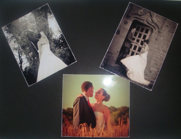 Coupez votre photo au dimensions souhaitées, puis limez les bords de la photo en inclinant votre lime vers le coté de la photo pour rayer un peu la photo elle meme.